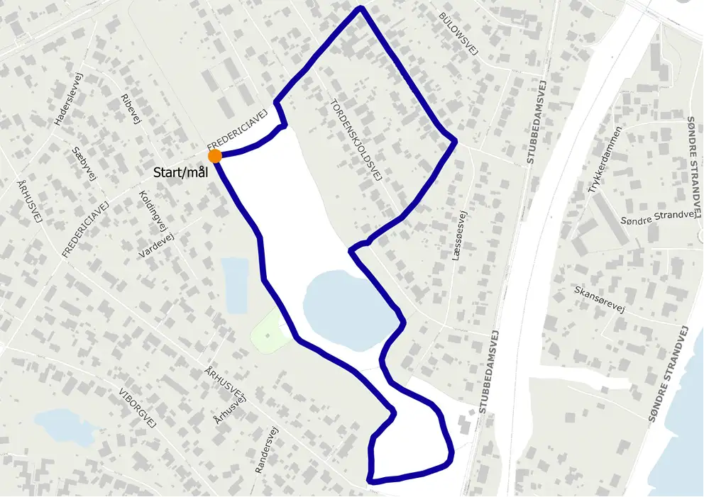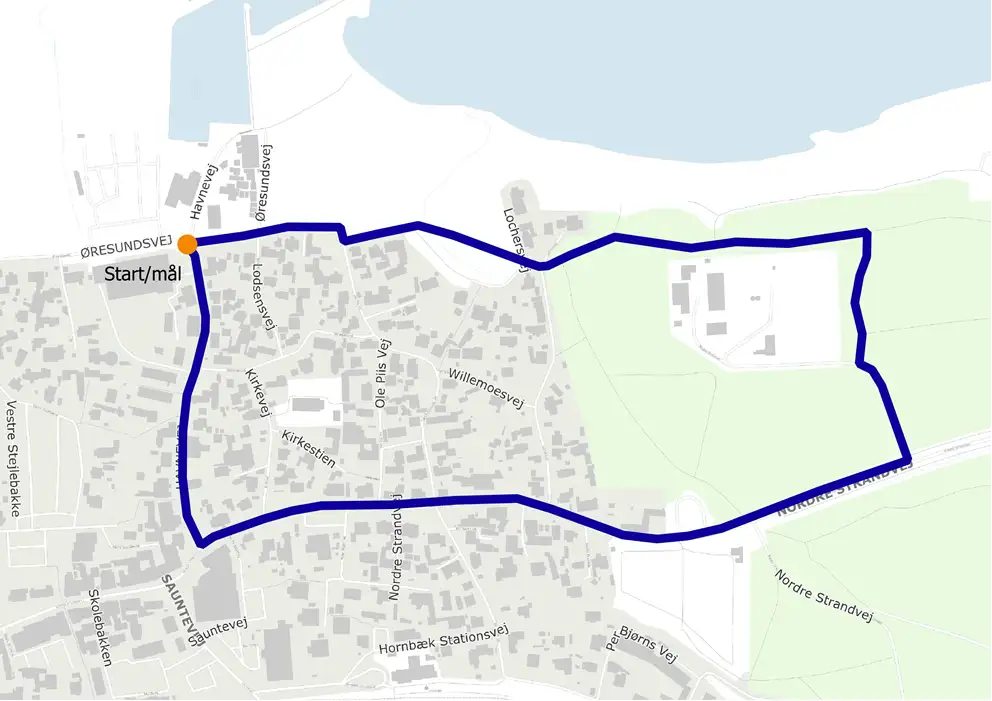 Fra naturskønne omgivelser i Gurre, stemningsfyldte gader i bymidten til boligområder og rå industri. Hvis du går eller løber 26 ruter, mangler du kun 400 meter for at have løbet et helt maraton! (42,195 km).